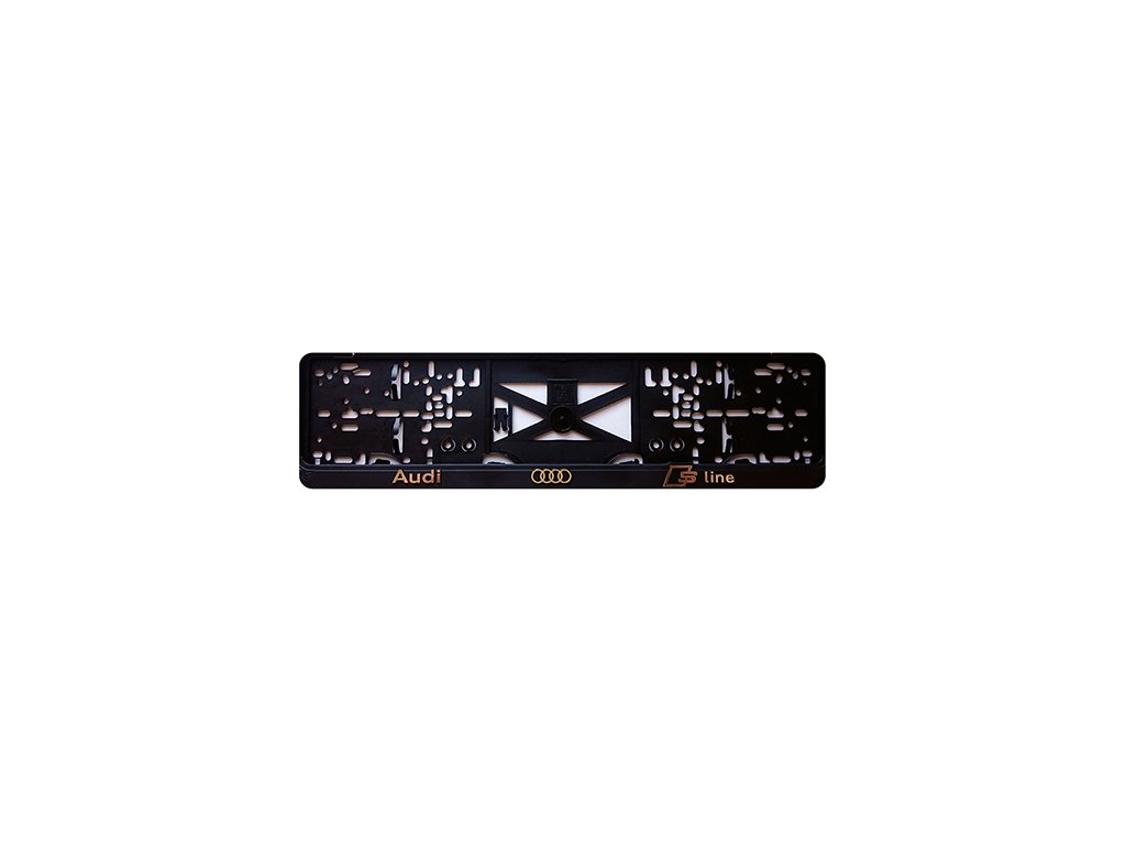 Chrómový 3D nápis Audi S Line vytvára exkluzívny vzhľad a odlišuje vaše vozidlo od ostatných. Držiak ŠPZ obsahuje poistku proti strate a krádeži.