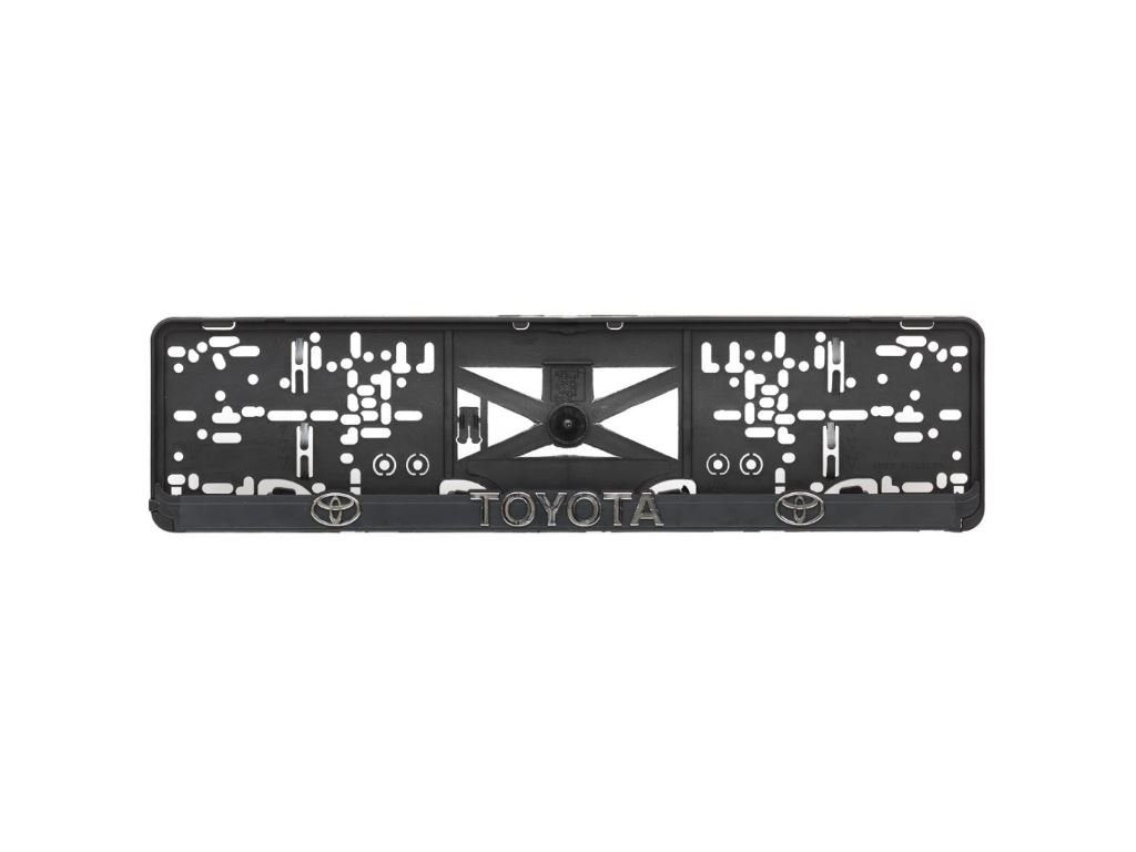 Chrómový 3D nápis TOYOTA vytvára exkluzívny vzhľad a odlišuje vaše vozidlo od ostatných. Držiak ŠPZ obsahuje poistku proti strate a krádeži.