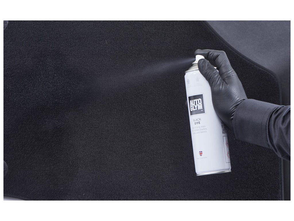 Rýchloschnúca lazúra Autoglym Black Dye Spray použiteľná pri oprave širokej škály povrchov. Vypĺňa a maskuje poškodené časti gumových, plastových a kovových dielov. Je výborne použiteľná na tkaniny.