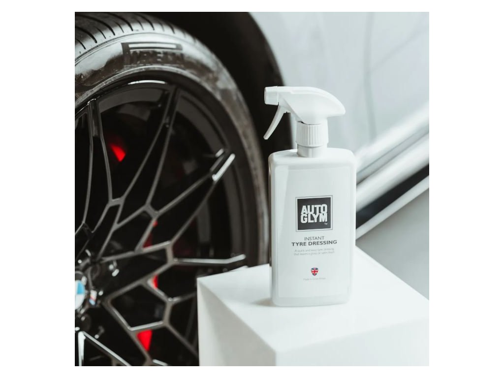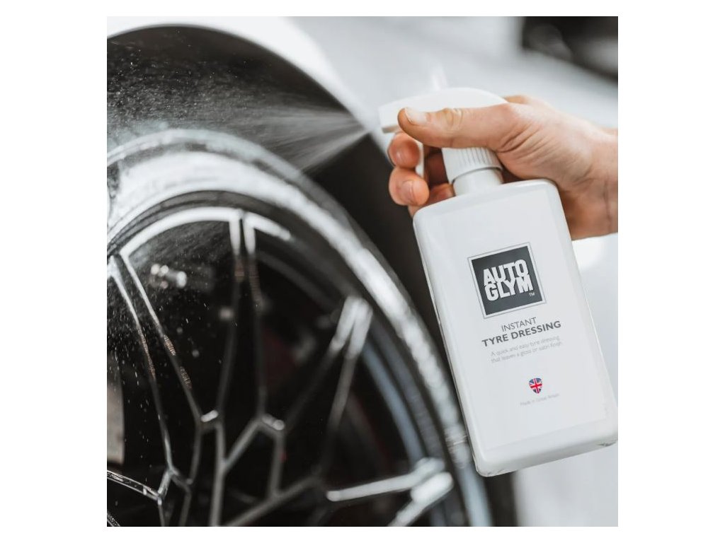 Zvetrané pneumatiky so škvrnami pokazia vzhľad pneumatikám s inak bezchybnou úpravou. Všetko, čo potrebujete, aby ste docielili premenu na novo - vyzerajúce pneumatiky, ktoré vylepšia vzhľad vášho vozidla, je použitie prípravku Autoglym Instant Tyre Dressing. Zmes trvanlivých polymérov a ochranných zložiek kompletne zrevitalizuje vaše pneumatiky do novej lesklej podoby. Ak chcete docieliť atraktívny lesk, jednoducho prípravok nastriekajte a nechajte zaschnúť.