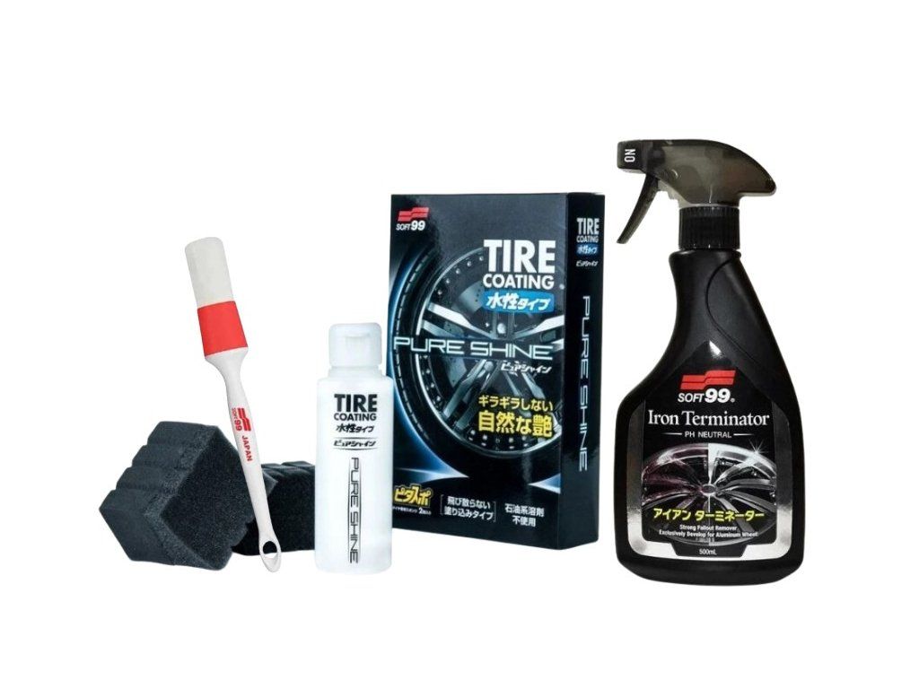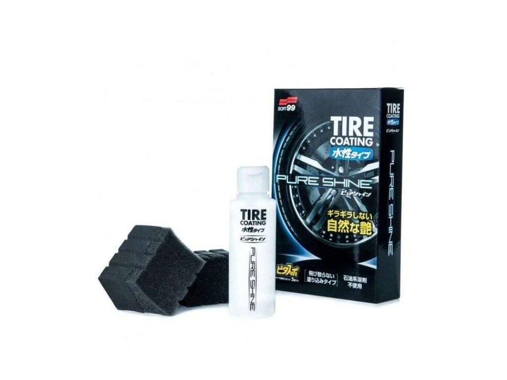 SOFT99 Pure Shine Tire Coating / Lesk a ochrana pneumatík - ochrana na vodnej báze a bez olejových rozpúšťadiel. Chráni pneumatiky a dodáva im saténový lesk, vďaka čomu vyzerá vaše auto elegantnejšie. Aplikácia je veľmi jednoduchá a rýchla. Balenie obahuje dve aplikačné špongie, ktorým sa v Japonsku hovorí Pitasupo. Sú totiž špeciálne zaoblené na jednoduchú aplikáciu na pneumatiku. Jedno balenie vám vystačí na 16 až 24 pneumatík.