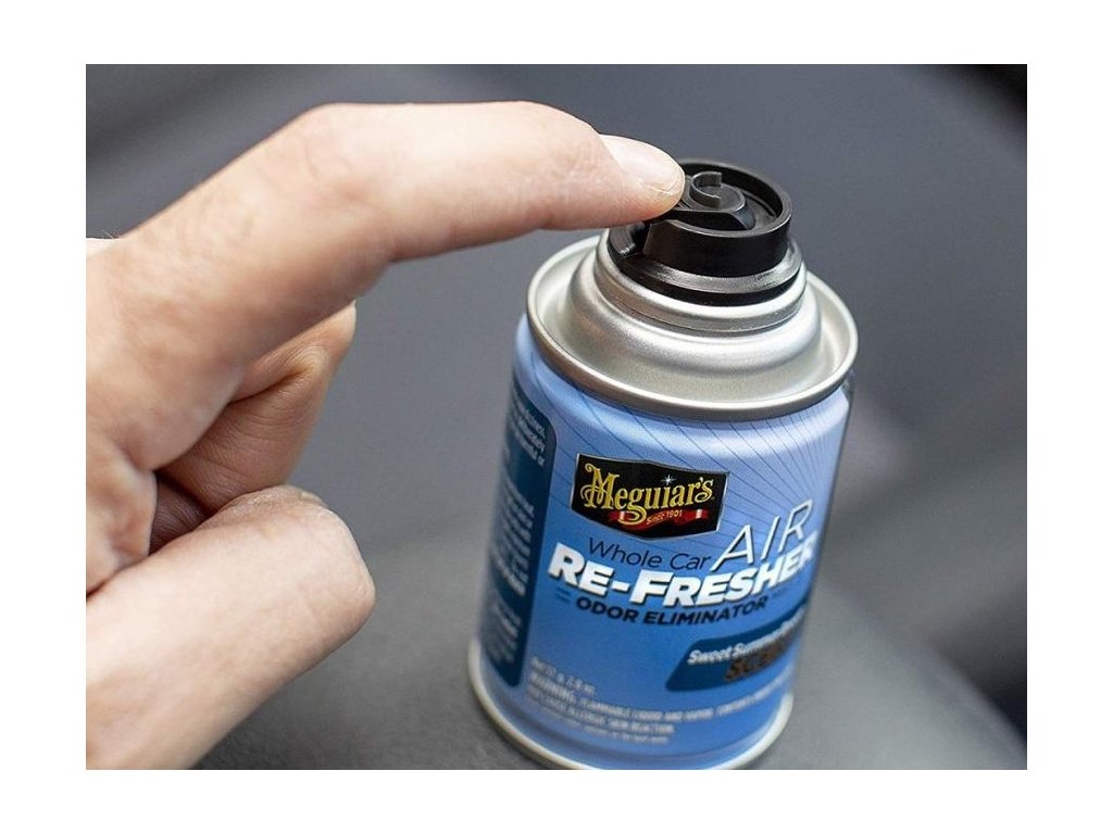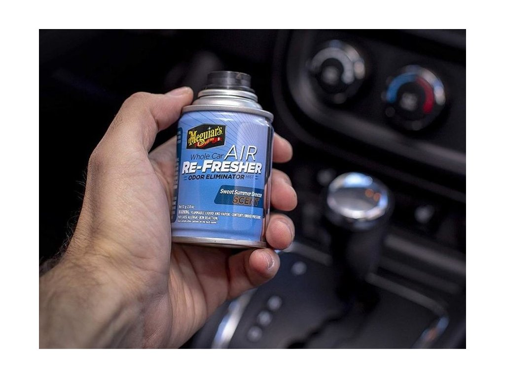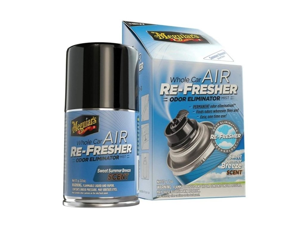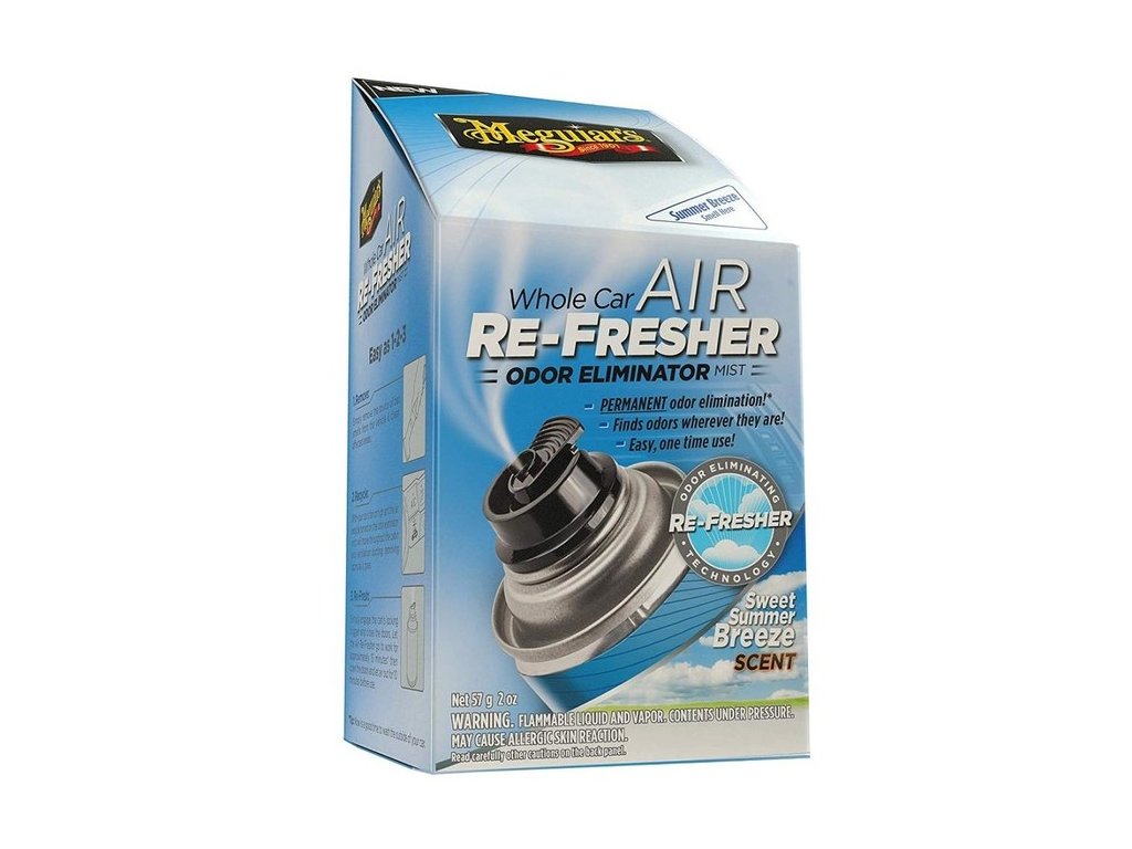 Meguiars Air Re-Fresher Odor Eliminator predstavuje jednoduchý a veľmi efektivný spôsob ako vyčistiť klimatizačný systém vo vašom vozidle, zbaviť ho všetkých baktérií a plesní, zlikvidovať všetky nežiaduce pachy v interiéri a prevoňať vaše auto podmanivou vôňou letného vánku "Summer Breeze".