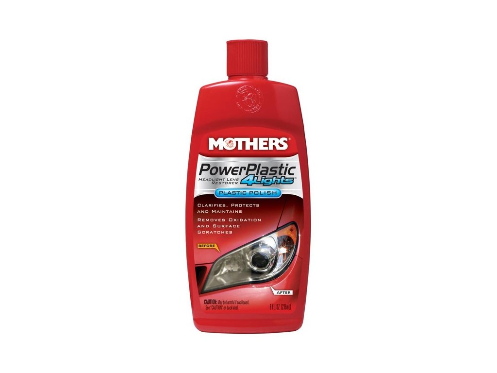 Mothers PowerPlastic 4Lights je leštenka pre obnovu a ochranu svetlometov, plastových okien kabrioletov a iných čírych plastov.