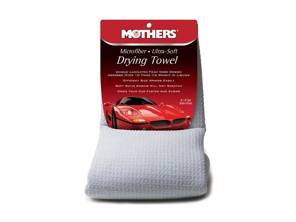 Najlepším spôsobom, ako zabrániť vzniku škvŕn na vašom laku, je vysušenie vozidla po každom umývaní. Mothers® Microfiber Ultra-Soft Drying Towel je veľký mikrovláknový uterák s absorbčným penový jadrom, ktorý nasiakne každú kvapku vody a nechá vaše auto bezchybne suché a bez škvŕn.
