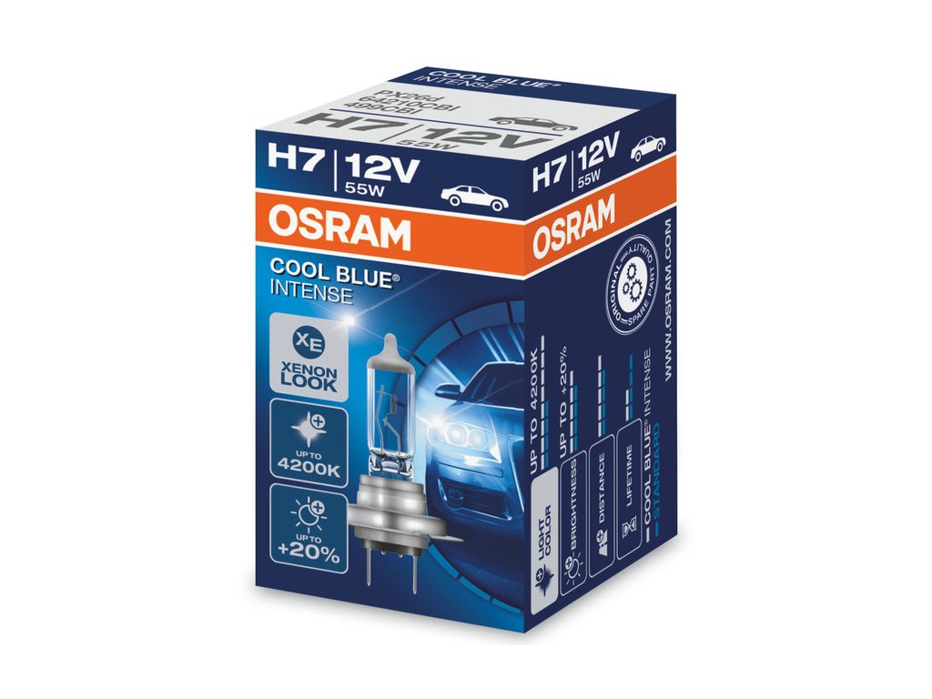 Osram Cool Blues Intense H7 je rad najmodernejších halogénových autožiaroviek, ktoré môžu súťažiť so xenónovými svetlometmi. Vďaka intenzívnemu jasnému modrastému svetlu s kapacitou až 4200 Kelvinov sú veľmi podobné svetlu xenónovej výbojky. Autožiarovky vytvárajú vysoko kontrastné svetlo podobné prirodzenému dennému svetlu.