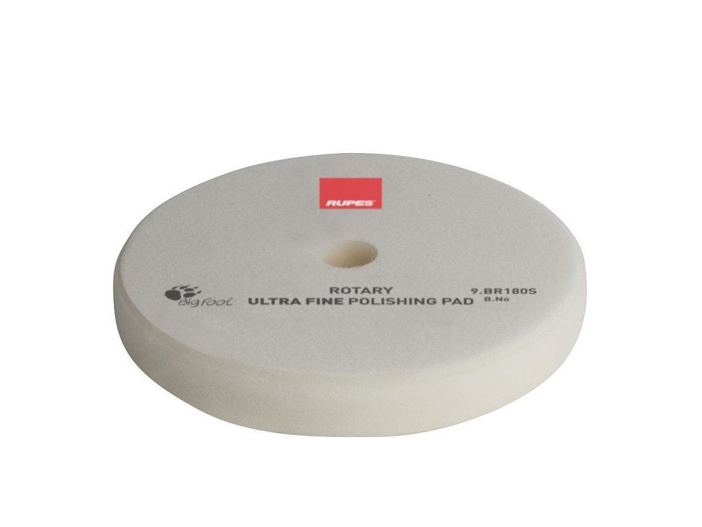 Zaoblený okraj kotúča pomáha predchádzať vytváraniu kruhových škrabancov a umožňuje užívateľovi produkovať vysoko lesklý povrch. Leštiaci kotúč je navrhnutý tak, aby pracoval s leštiacou pastou Rupes BigFoot Ultra-Fine Rotary Polishing Compound. Ultra jemný leštiaci penový kotúč je navrhnutý tak, aby vytváral najvyšší možný lesk pri použití rotačnej leštičky. Tieto kotúče pracujú v dokonalom súlade s nízkou rýchlosťou otáčok leštičky Rupes LH19E a leštiacej pasty Rupes BigFoot Ultra-Fine Rotary Polish, ktorá vytvára extrémny lesk na akomkoľvek type a farebnom odtieni laku.