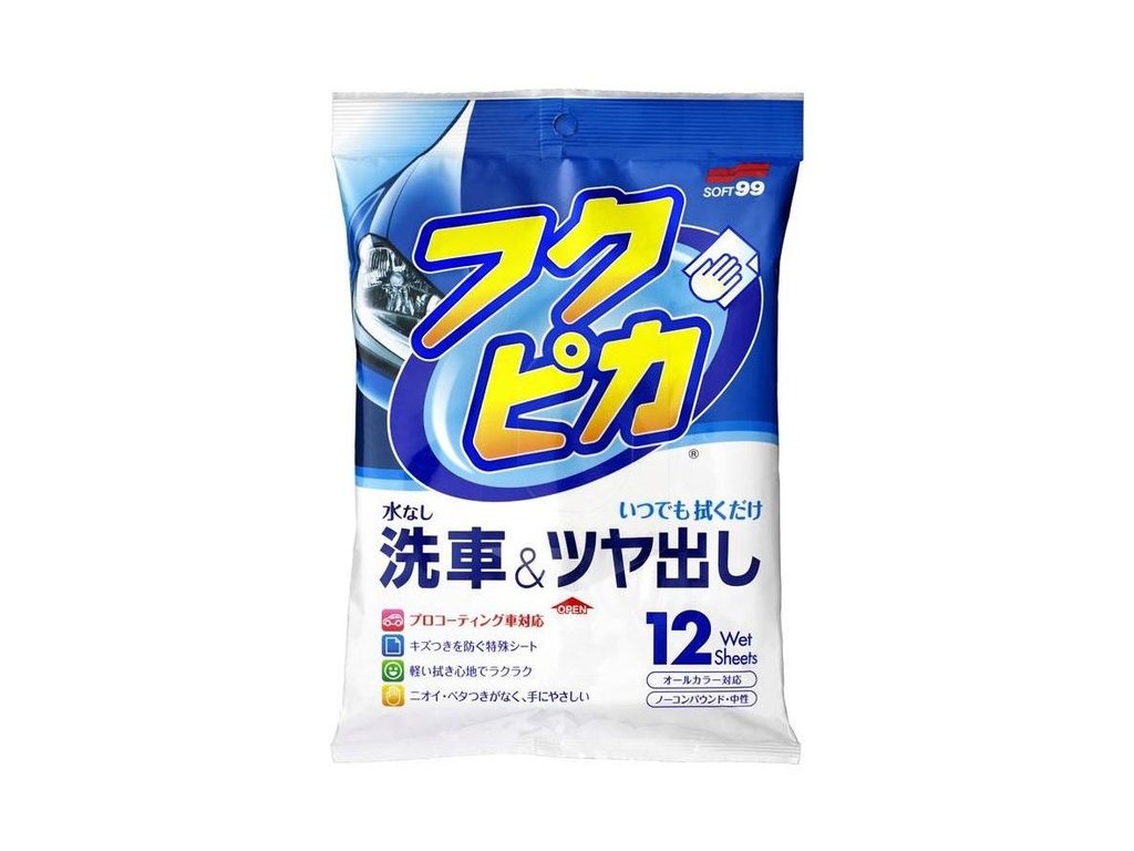 SOFT99 FUKUPIKA WASH & WAX 12 Wipes / Vlhčené utierky na umývanie a voskovanie bez vody