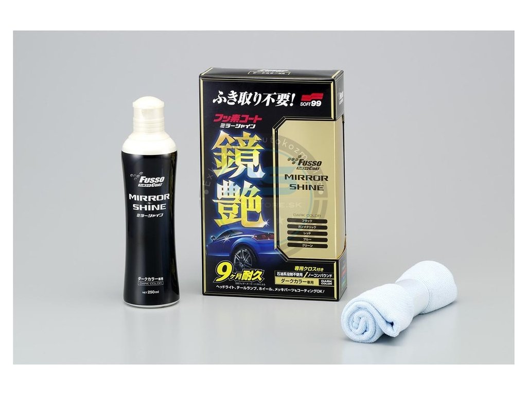 Fusso Coat Mirror Shine Dark je plne syntetický sealant s revolučnou gélovou formou, poskytujúci jednoduchú aplikáciu iba v jednom kroku! Sealant sa nanáša na dodávanej jemnej mikrovláknovej utierke vtieraním do laku. Po aplikácii ochrany nemusíte čakať na zaschnutie a nevykonáva sa stieranie ani rozlešťovanie.