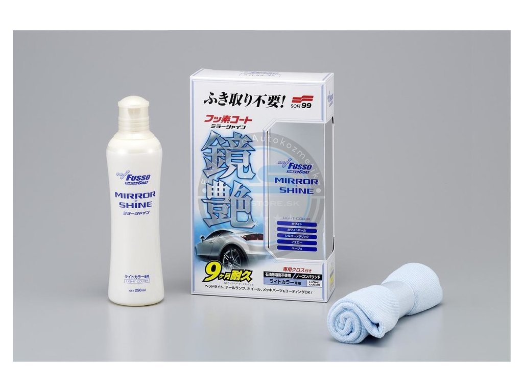 Fusso Coat Mirror Shine Light je plne syntetický sealant s revolučnou gélovou formou, poskytujúci jednoduchú aplikáciu iba v jednom kroku! Sealant sa nanáša na dodávanej jemnej mikrovláknovej utierke vtieraním do laku. Po aplikácii ochrany nemusíte čakať na zaschnutie a nevykonáva sa stieranie ani rozlešťovanie.
