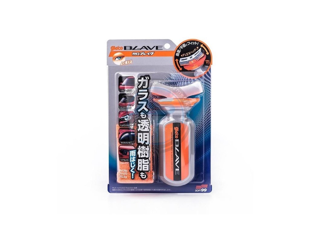 SOFT99 Glaco Blave je prípravok, ktorý zaisťuje silný hydrofóbny účinok nielen na povrchu skla, ale aj na priehľadných plastoch, ako sú predné a zadné svetlomety, smerové svetlá, priezory prilieb, ochranné okuliare, kamery a ďalšie. Zaisťuje výbornú viditeľnosť pri jazde v silných dažďoch. Prípravok netreba nechať zaschnúť, čo ma za následok veľmi rýchle použitie.