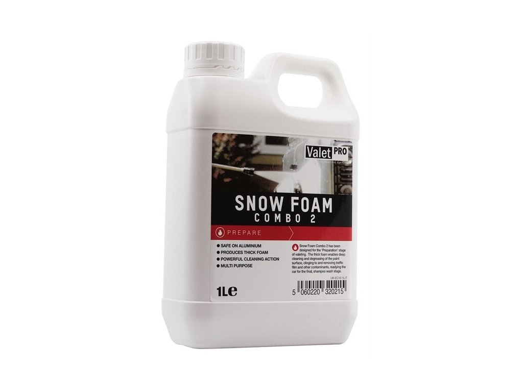 ValetPRO Snow Foam Combo 2 je profesionálna, veľmi účinná a vysoko koncentrovaná zásaditá aktívna pena. Vytvára bohatú hustú penu s vysokou priľnavosťou, ktorá účinne preniká do usadených nečistôt, ktoré svojim pôsobením narušuje a separuje od povrchu. Z dôvodu vyššieho pH (zásaditej, alebo inak alkalickej reakcie) je vhodná najmä na umývanie veľmi znečistených vozidiel, odmasťovanie povrchov a rovnako tak aj na prípravu povrchu pred aplikáciou voskov, sealantov alebo povlakov. Produkt je nevhodný na bežné údržbové umývanie, nakoľko sa vyznačuje silným odmasťovacím účinkom, a zároveň aj schopnosťou účinne odstraňovať zbytky voskov alebo sealantov, takže aplikované vosky a sealanty by po použití produktu boli odstránené resp. oslabené alebo poškodené.